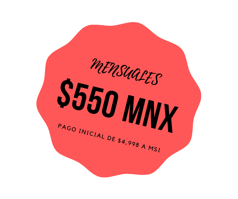 El costo es desde $550 pesos mensuales, el pago inicial es de $4,998 a Meses Sin Intereses.